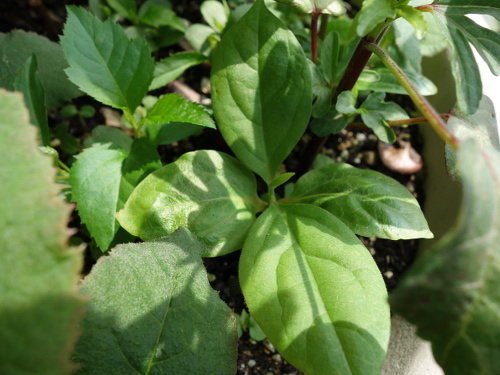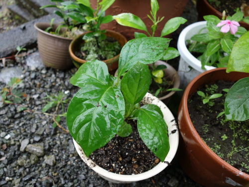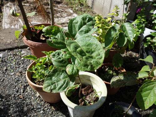混み合って日蔭になってきていたので、鉢に植え替えました。この鉢には2本まとめて植えました。あとで1本にするか、分けます。