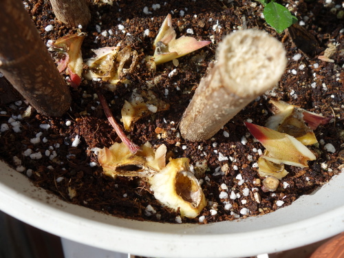 2個目の赤い方を昼に割ってみましたが、蜜は入っていなくて、果肉の着色もほとんどありませんでした。