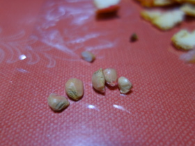 種が入っていましたが、包丁で半分に切れたものもありました。