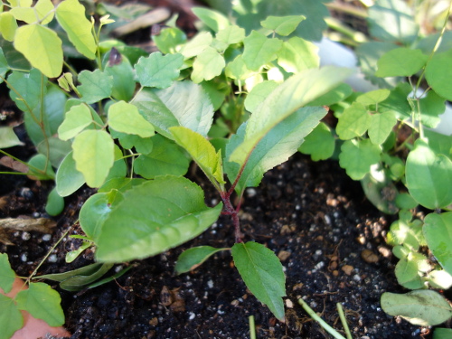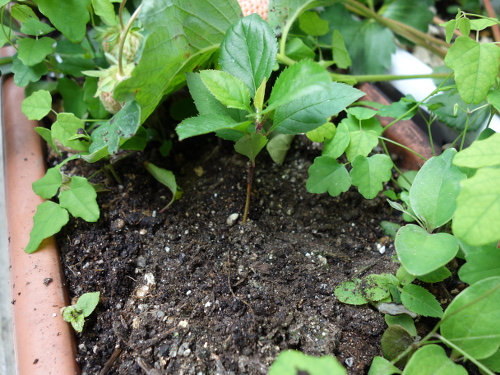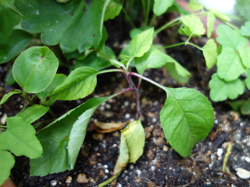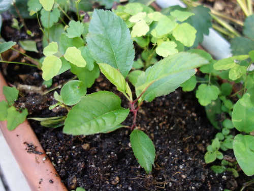 陶器製の鉢に植えていた星の金貨の実生をプランターに移植します。その場所は植えた植物がことごとく枯れて行く鬼門です。りんごの苗も枯れるのか試してみます。