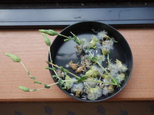 種を収穫しました。花柄のところから摘みました。まだ不完全な種がついた枝がもげてしまいました。
