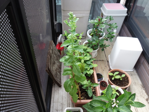 しかし、2枚前の写真でわかるように、種がプランターに落ちていました。そこから発芽して大きくなった苗が3本ありました。