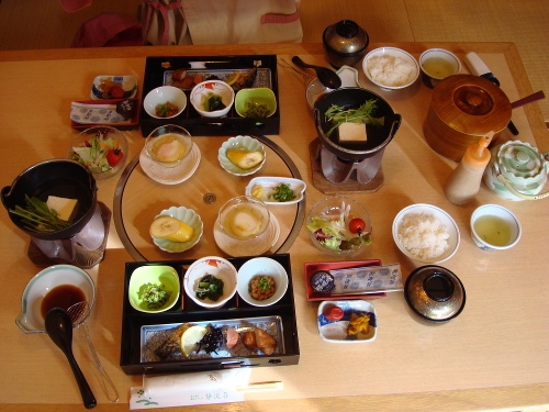 夕食と同じ場所。朝食も美味しかったです。お櫃が置いてあって、お替わり自由。(6月29日7:56)