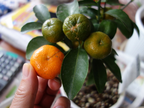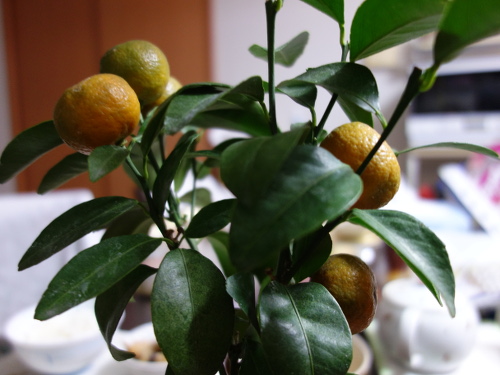 1月までに収穫した方が焼きサバにかけた時には美味しいかもしれません。しかし、そのまま食べる時には黄色くなった時の方が良さそうです。また、木への負担を減らすためには早めの収穫が良さそうです。今、新芽が伸びそうなので実を全部収穫しました。これから暖かくなるので、鉢を一回り大きくしたりして、もっと生長するように環境を整えたいと思います。