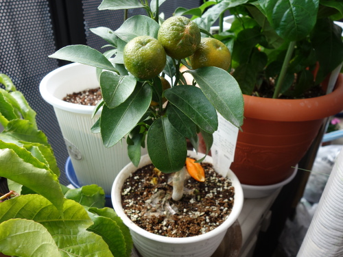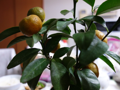 2017年2月2日に1個収穫したので残り4個になりました。あまり熟れていない方が焼き魚にはいいかもしれません。