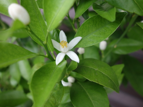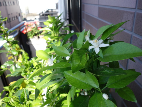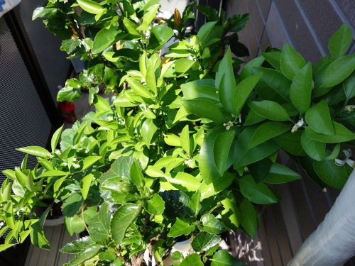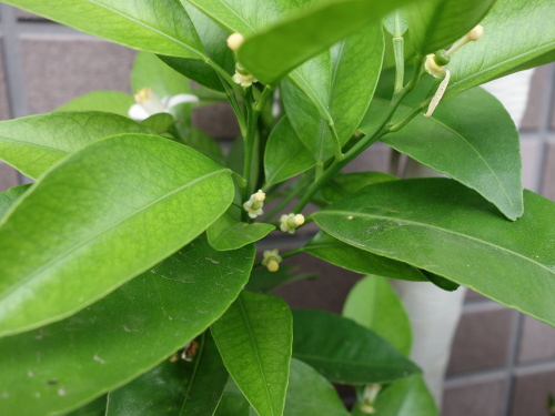 シークヮーサーの花が多数咲きました。自家結実性なので1本で実がなります。人工授粉をしなくても実が生るといわれていますが、一応自分でも綿棒で行いました。来訪したミツバチも花粉媒介者(ポリネーター)として働いてくれました。