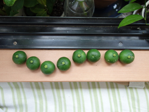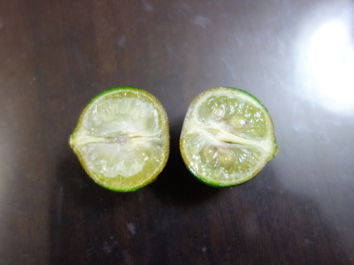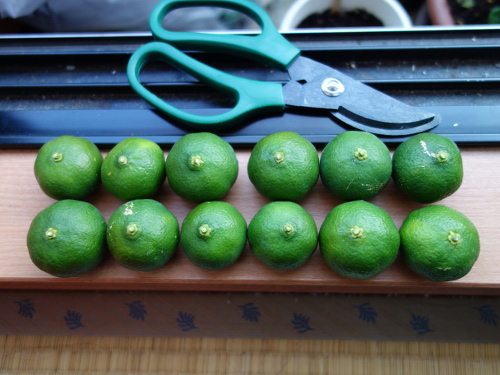 2018年のシークヮーサーの収穫は25個になりそうです。2018年9月14日に8個収穫しましたが、9月21日現在、まだ収穫していない実が17個あります。