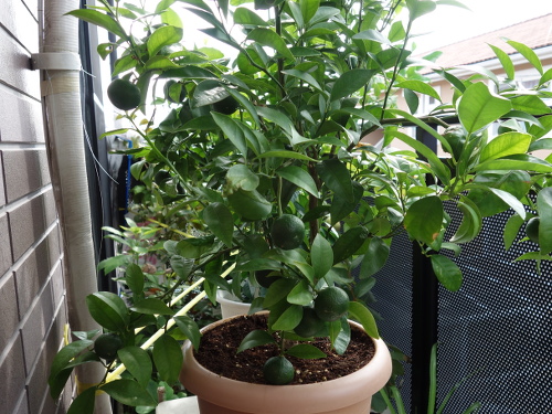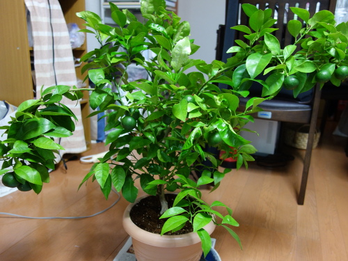 トップページ > 果樹の栽培記録 > 鉢植えシークヮーサーの2018年の収量は25個で収率は35%