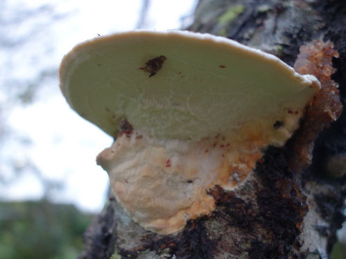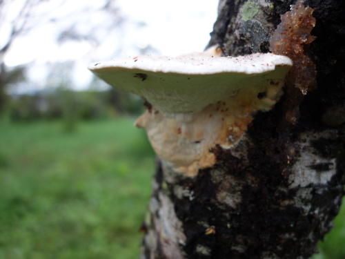樹液が滲み出してゲル状になっています。こういうのも菌の生育に適しているのでしょう。