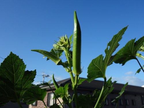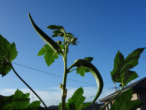 青空が気持ちいい日です。これは1本目と2本目です。大きいのが穫れそうです。ちなみにこの実は9月18日の花の実ではありません。その間にもそこそこ収穫できました。