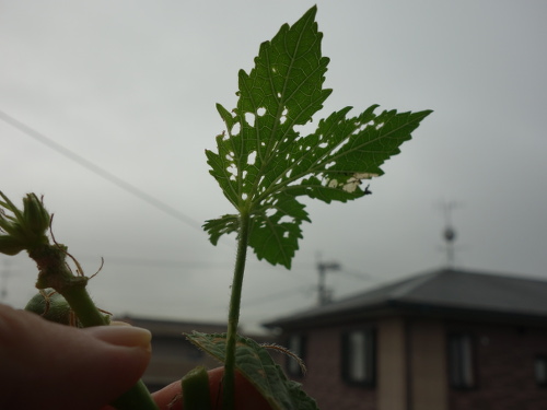 葉っぱが虫に喰われています。今年は虫が大量に発生しました。これも4本育てた弊害かもしれません。昨年は虫はほとんど付きませんでした。