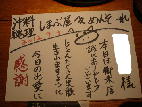 トップページ > 私の旅行記 > 沖縄旅行記 > 沖縄旅行2012-1日目 > しまぶた屋(2回目2012年)