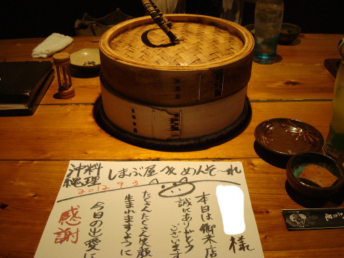 今回も座敷の席になりました。あぐーのせいろ蒸しコースを注文しました。やっぱり美味しいです。たぶんまた来るだろうなーと思いました。人にも自信ををもっておすすめできます。本来、こういう店はもし自分の普段住んでいるエリアにあったら隠れ家的に秘密にしてしまいそうですね。そう思わせる店です。