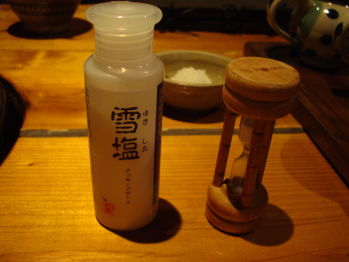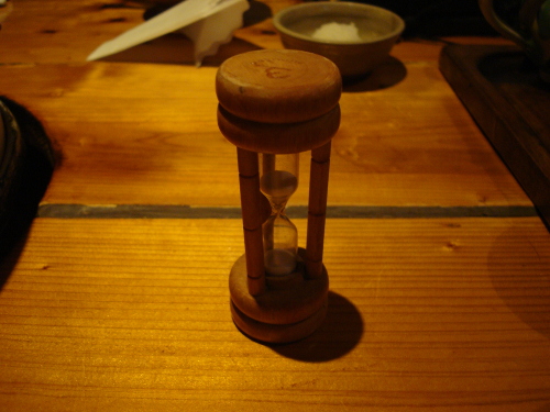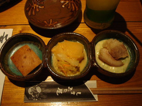 通算2度目の2012年9月3日。リピーターになった日です。今回の予約は19:00でした。あいかわらず繁盛していて、お客さんが多かったです。会計のカウンターの反対側の壁には名刺が壁一面に貼ってあります。お客さんが記念に残していくようです。知り合いがいないか見てみましたが、さすがにいませんでした。