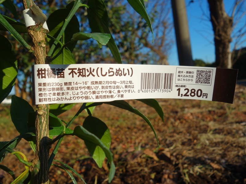 不知火の果実の中で糖度がある基準を満たしたものがデコポンだったと思います。つまり、今回植えるのは不知火の接木苗になります。(2026年1月3日10:48撮影)