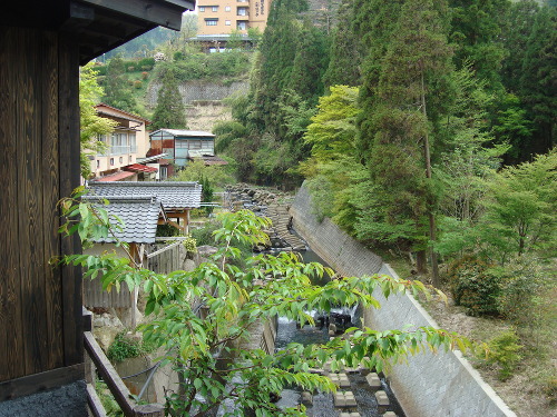 山あいの温泉郷、筋湯温泉 白滝のお湯はナトリウム塩化物泉で、源泉かけ流しの湯です。部屋から下を見下ろすと川がありせせらぎが聞こえます。私達の部屋は客室半露天風呂が付いている部屋でした。2部屋のみにある半露天風呂とのこと。木々の緑を楽しみながら寛ぎのひとときを過ごすことができました。