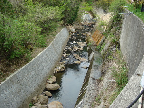 川の上流方向の風景。