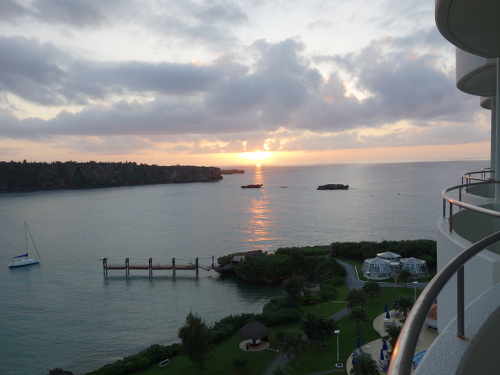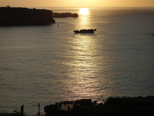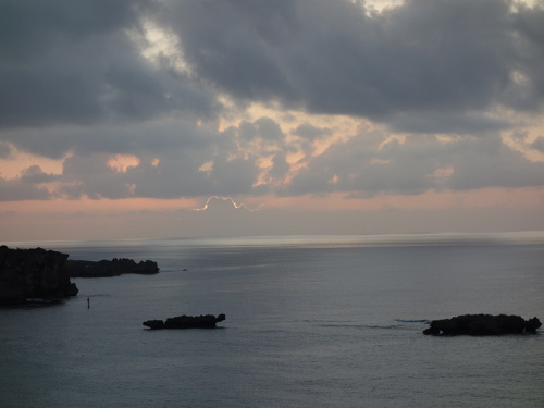 17:47撮影。ANAインターコンチネンタル万座ビーチホテルの8階客室からみた万座毛方面の海