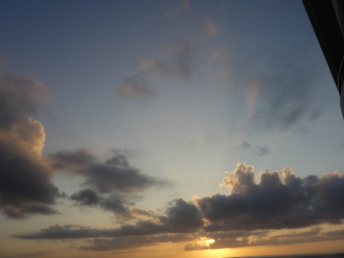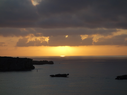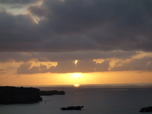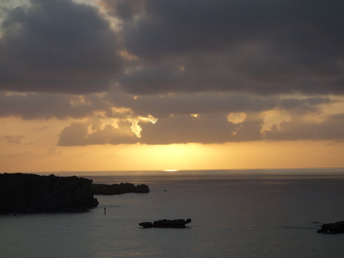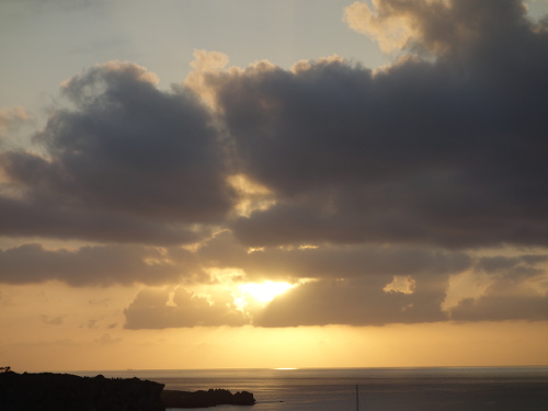 昨日(2016年10月24日)の夕焼けとは違った感じでした。何が違ったのか考えてみましたが、雲の量だと思われます。25日の方が雲が黒かったので分厚い雲だったのだと思います。広範囲の雲であれば、夕陽の方向からみて分厚い雲になります。その分、黒っぽくなります。いろいろな夕陽が見られたので、今回の沖縄旅行は良かったです。せっかくの沖縄旅行で夕陽が見られなかった時は本島にがっかりします。本気でリベンジしよう(もう一度来よう)と思ったりします。