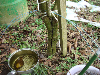 Restoration Process of split root of Japanese persimmon Taishu damaged by Typhoon (July 2006)