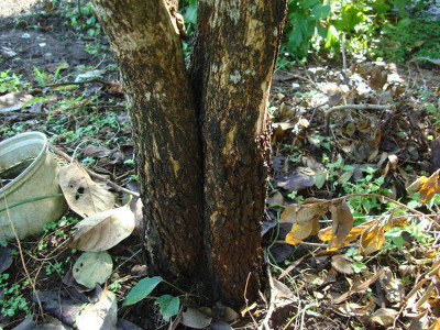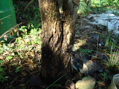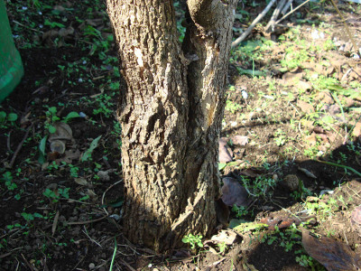 トップページ > 果樹の栽培記録 > 柿 > 太秋の根元の修復過程