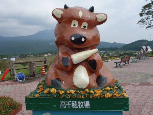 旅行人山荘から高千穂牧場までは車で20分ほどで行くことができます。霧島神宮を目指して行けば、そこから数kmで高千穂牧場があります。一応、鹿児島県から宮崎県に行った形ですが、県境なので近いです。予約した時間までの待ち時間が2時間とかの場合は、ずっと旅行人山荘で待っているのはもったいないので、時間を有効利用するために高千穂牧場とか、霧島神宮とかに行くことをおすすめします。まほろばの里も選択肢の1つです。この場合は、来た道を少し戻ることになります。でも、天気が良かったら私のイチ押しは高千穂牧場です。行ったら、私のおすすめはソフトクリームです。