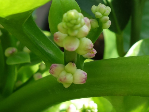 2017年10月22日、蕾がたくさん付いているのに気付きました。ツルムラサキ赤茎種の花は見たことがありますが、緑茎種の花は今回が初めてなので、楽しみです。