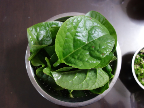 ホームセンターからツルムラサキの緑茎種を買ってきました。赤茎種は観賞用、緑茎種は食用というイメージを私は持っています。