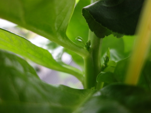 7月3日に大きな葉っぱを下の方からたくさん収穫した辺りから茎が伸び始めたような気がします。茎が伸びると葉っぱがあまり大きくならないようです。どちらかというと茎はそんなに伸びなくていいから大きな葉っぱを収穫したいです。なかなかバランスよくできないものですね。もう少し試行錯誤してみます。