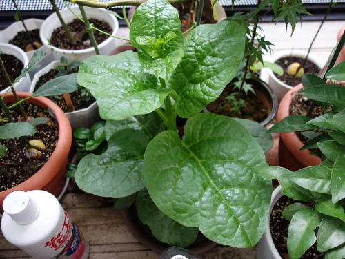 高さの低い鉢では横に広がり、縦長の鉢では縦に伸びるように見えるのは気のせいでしょうか。左側のツルムラサキがこの記事で扱っているもので、右側は妻が育てています。鉢の形で苗の形がコントロールできるのなら面白いと思うのですが、偶然でしょうか。