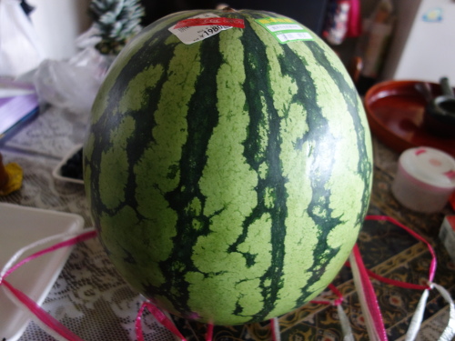熊本産の「肥後浪漫」というスイカ。(2019年6月29日13:47)