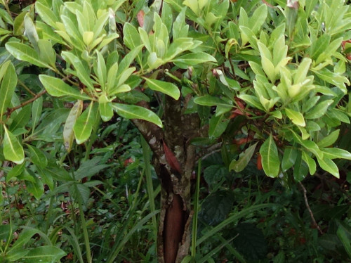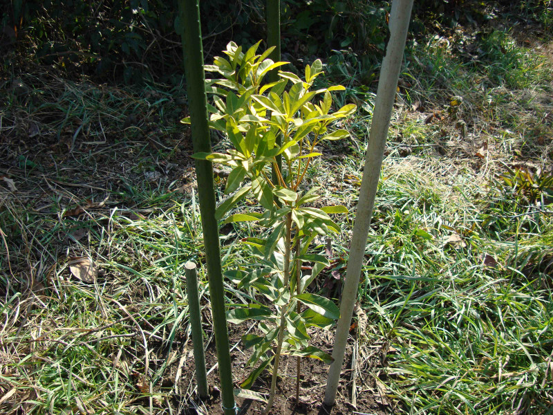 そこで、2012年の晩秋に、ホームセンターで見つけた山桃の苗木を買ってきました。園芸店等で売られているのは実のなる雌株の枝を接ぎ木しているのですべて雌株だそうです。買ってきたのは秀峰という品種です。雌雄異株のため結実には雄株が必要であるということなので、新しく買ってきた苗が雌株であれば、結実性は高くなるはずです。ちなみにネクタリンにも同じ名前の品種があります。これから何年後になるかわかりませんが、楽しみに育てたいと思います。