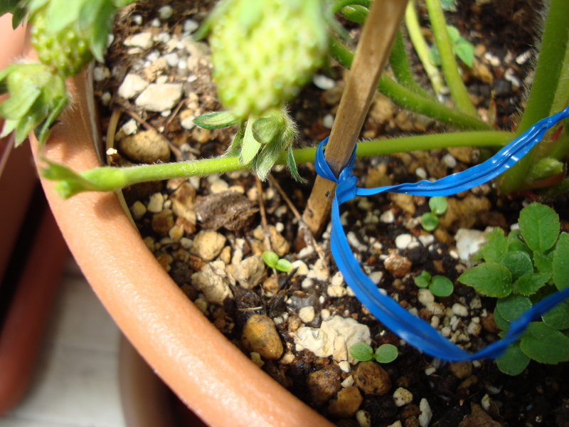 果実を2個収穫してから、急速にランナーが2本伸びてきました。これらで二郎苗、三郎苗をつくりたいと思います。