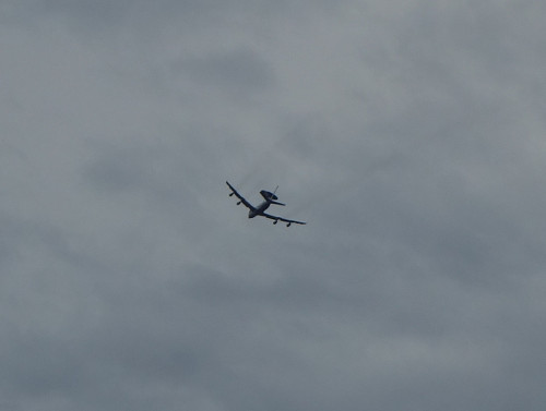16:58撮影。個人的には面白い飛行機だと思います。早期警戒管制機(airborne warning and control system, AWACS) E-3でしょうか。