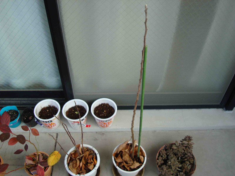 2012年4月16日現在 未知の種子からさらに2本発芽していました(全体を撮影)。