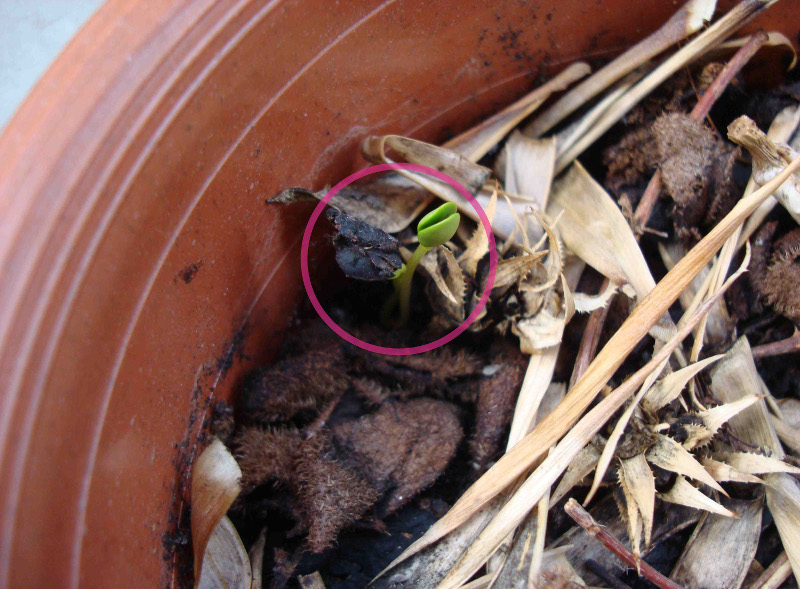 2012年4月16日現在 ここに新しく1本が発芽していました(拡大写真)。よって合計2本が新しく発芽したことになります。