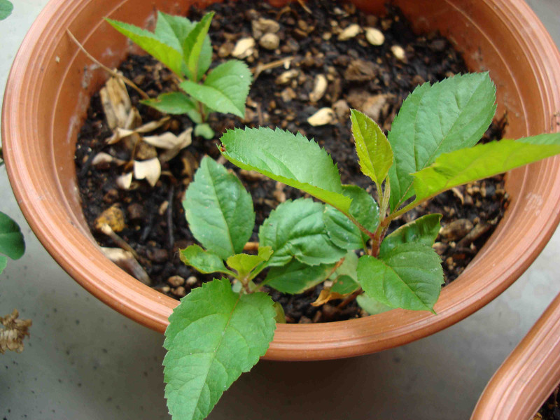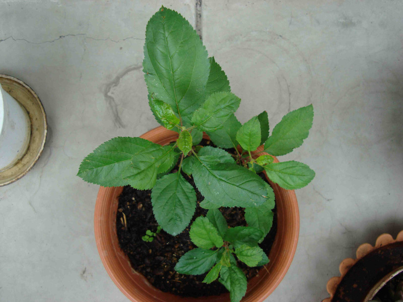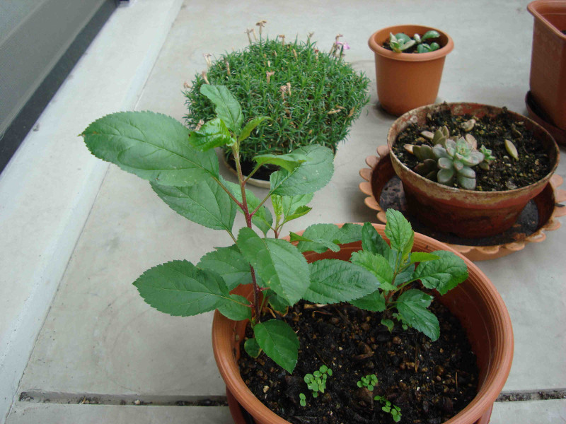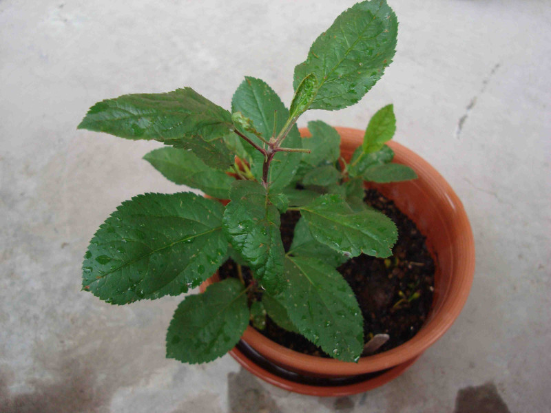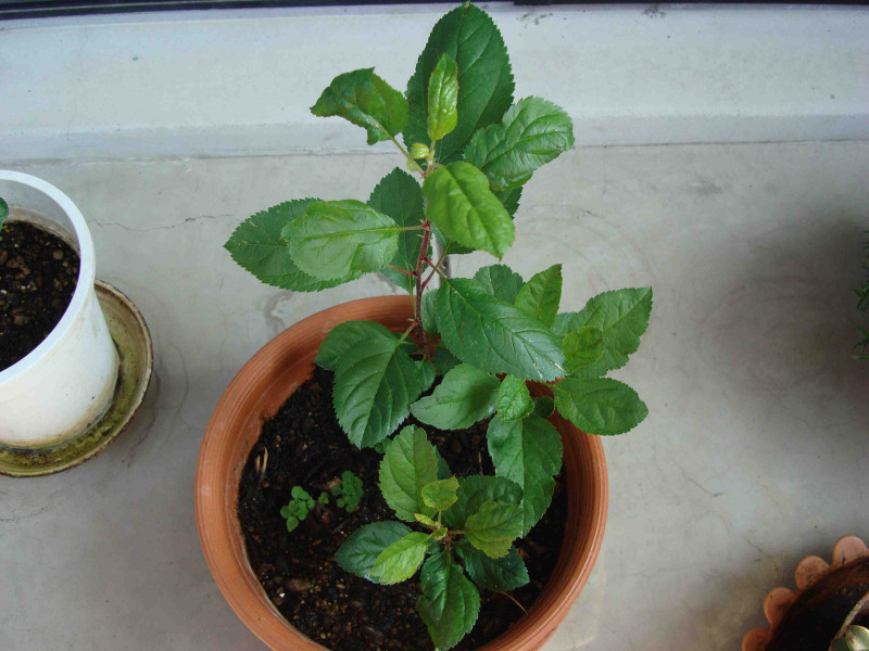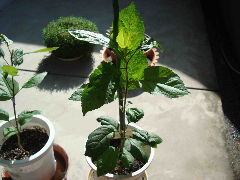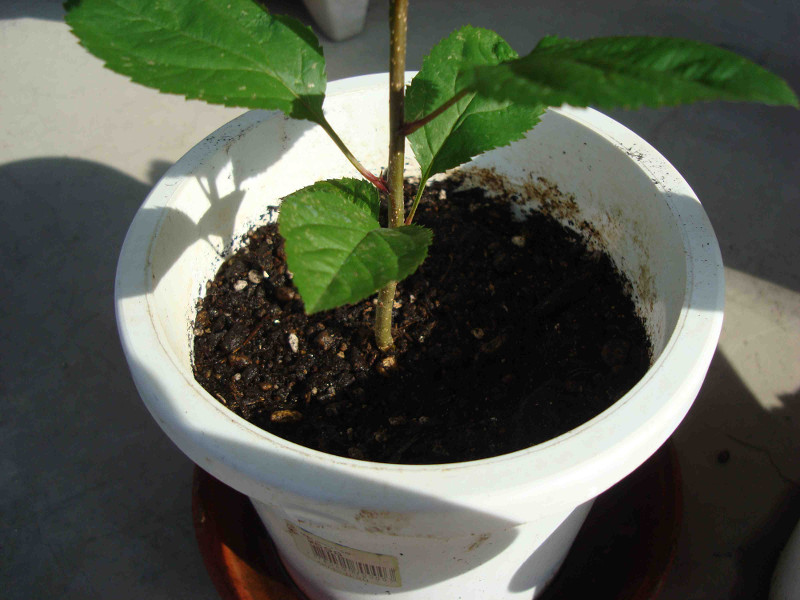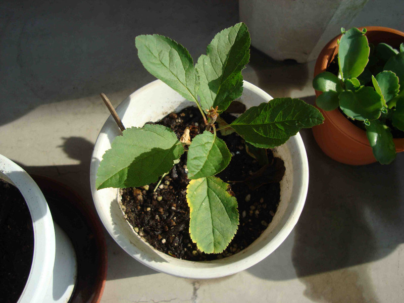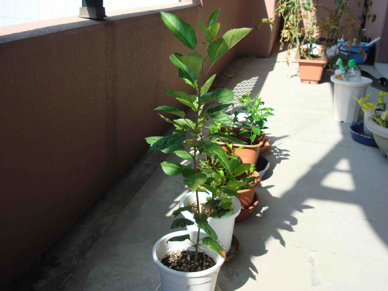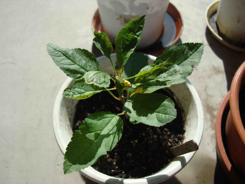 2012年9月9日(日) 4本目の苗木はなぜか生長が遅いので大きなプランターに植え替えました。