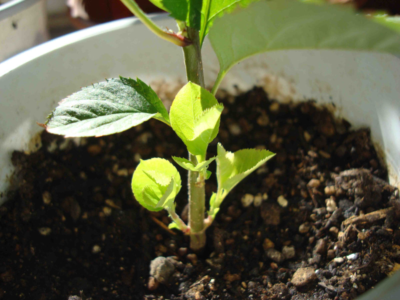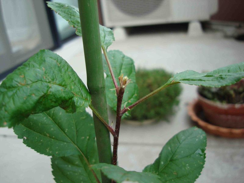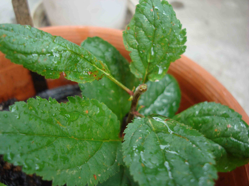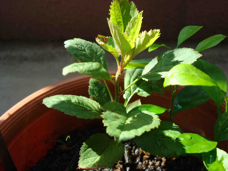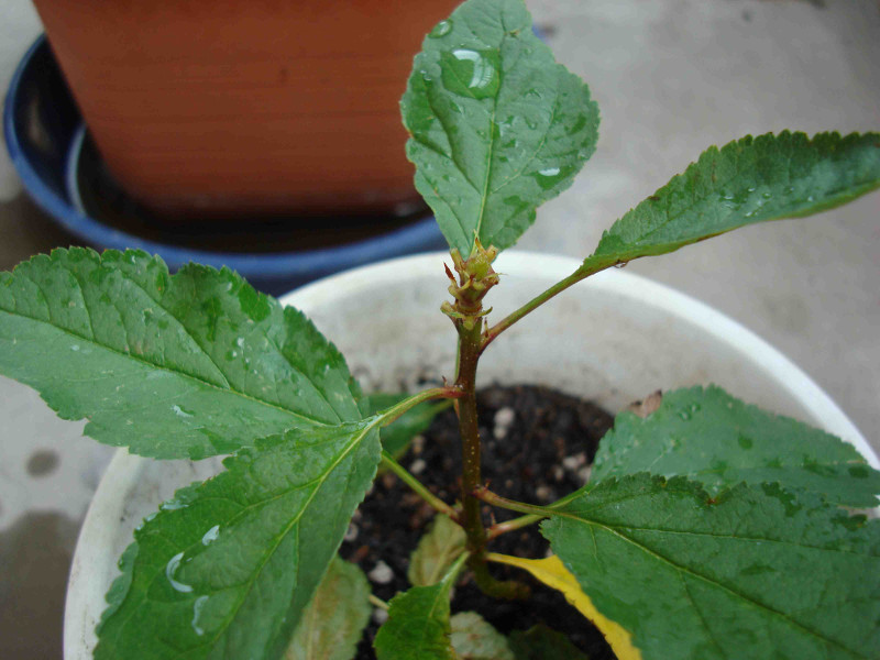 2012年8月19日(日) 4本目の苗木の先端に新しい葉っぱが出てきました。