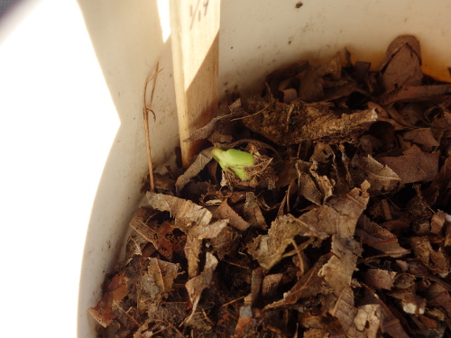 2018年3月17日には4本目の発芽が確認できました。また、同日、千雪の種からの発芽が確認できました。播種から発芽までの期間は両方とも約1ヶ月半でした。