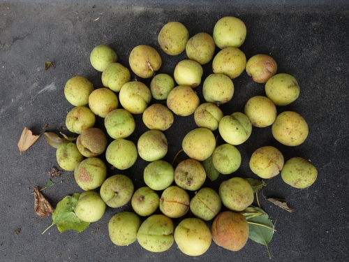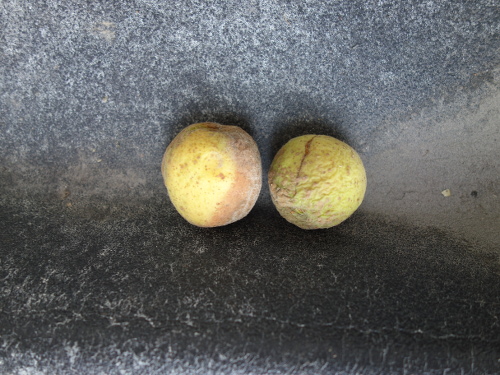 これが収穫した時点で腐っていたアンズの実2個。