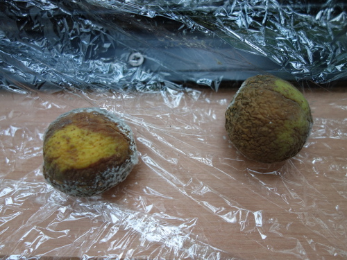ラップに包んでいたらカビが生えていました。これを果肉がついたまま植えます。