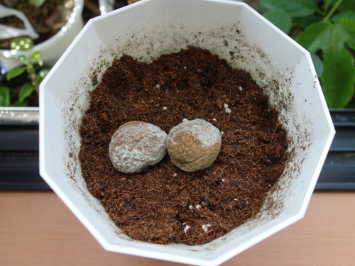アンズ平和の種2個を鉢に蒔きました