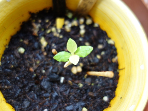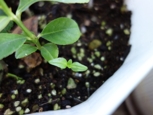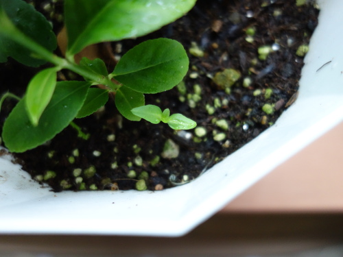 3本目のバンシルーの実生苗がレモンの実生苗の下に出ています。これをNo.3とします。