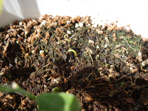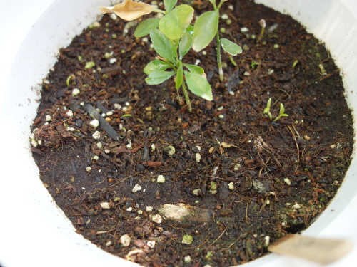 6個目の鉢。この種は2個目のバンシルーからとった種です。発芽は2本確認できます。