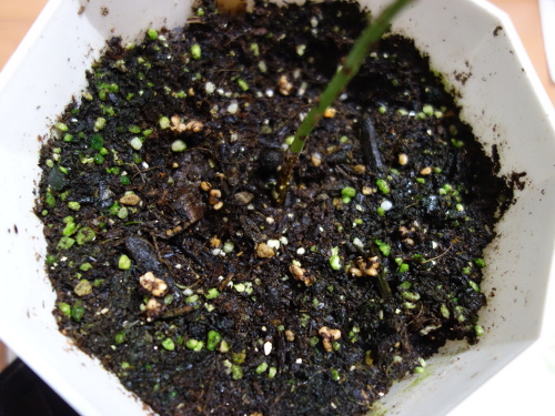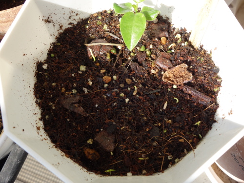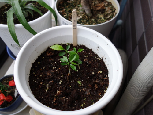 3個目の鉢。この種は1個目のバンシルーの種です。金柑の実生を植えている鉢です。