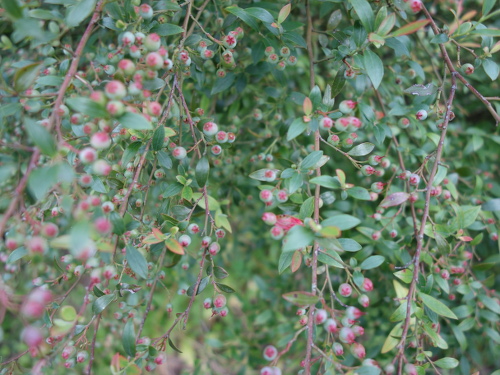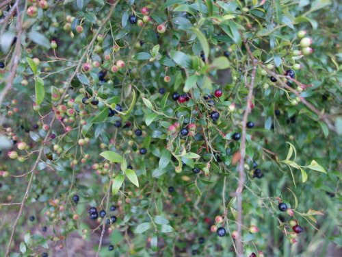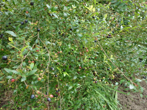 枝によっては濃紺の果実が生っています。もうすでに熟れた果実は随時収穫しているので、果実の数は減っています。