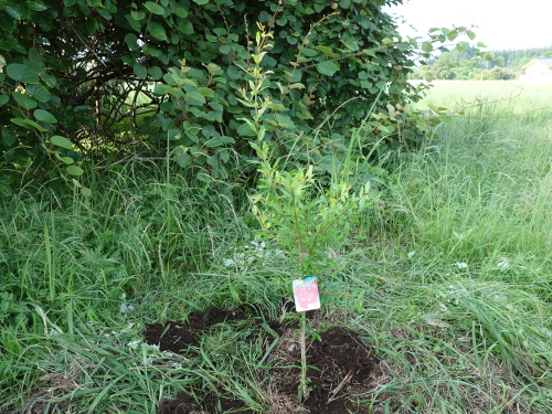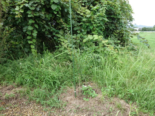 2018年6月2日、実家の畑に地植えしました。ザクロは痩せた土地でも意外に生長するというイメージがあるので、草ボ^ボーのこの場所でもいけるのではないかと思っています。