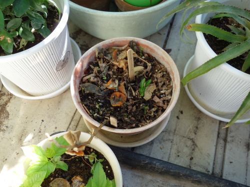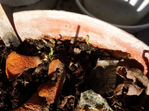 種を鉢の隅に蒔きました。(2018年1月22日)