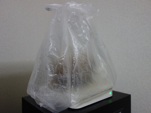 スーパーの袋に入れたままルーターの上に置いてみたり・・・。でも、これでは見えないので楽しくありません。