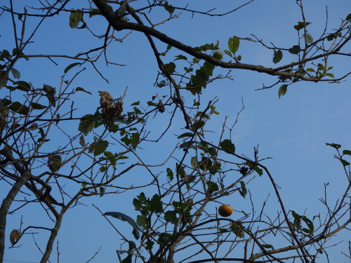 蔓自体が下に落ちてきています。このあと、太秋柿の木の上の方の枝にひっかけました。